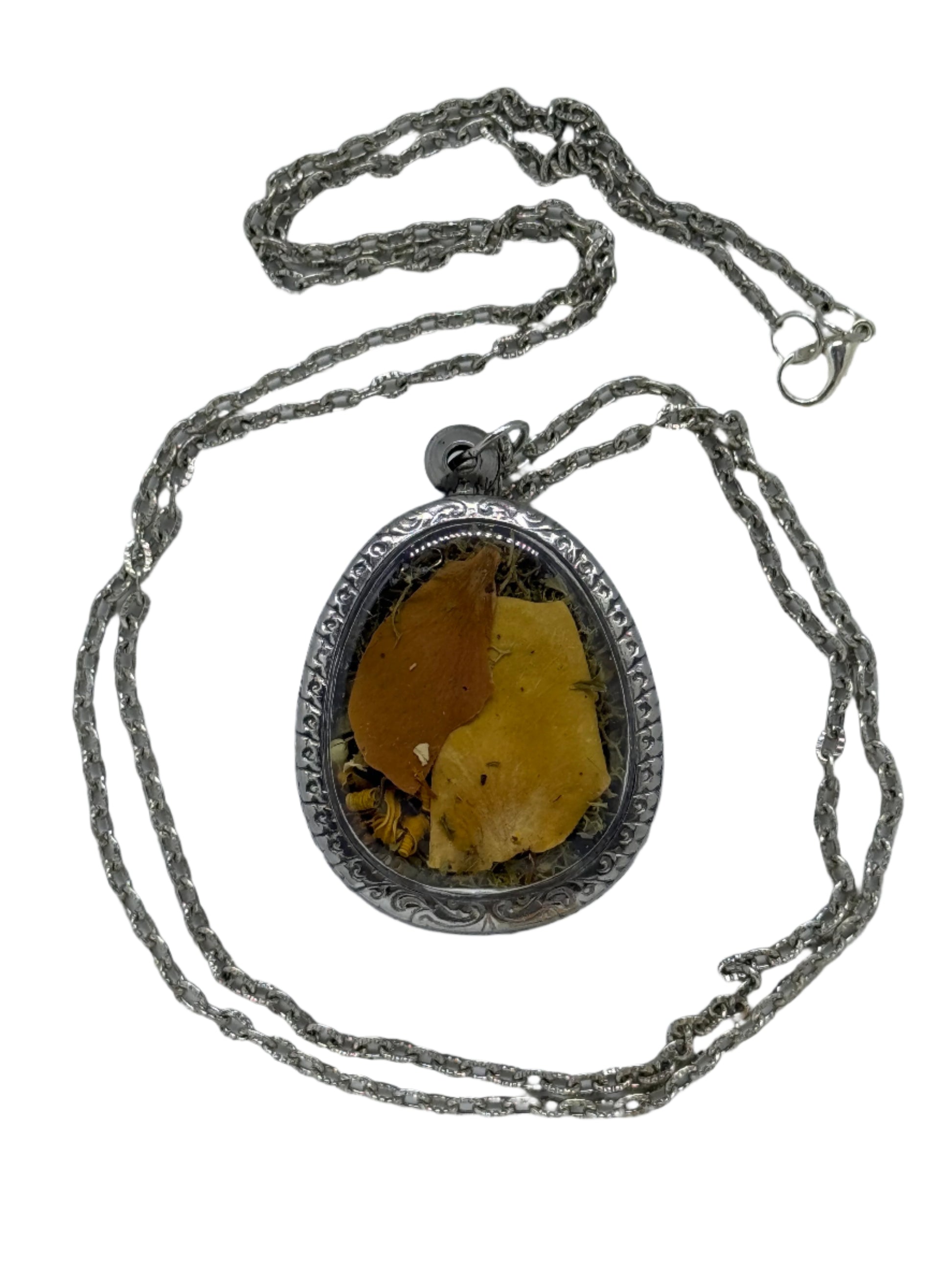 Evoke the nostalgia of a childhood spent daydreaming of flower fields. When you need to be swept away by the beauty of nature for just a moment, carry the memory of a childhood that was spent frolicing through feilds of flowers by wearing these neckalces featuring real dried blossoms and moss that encapsulate that magic and nostalgia of simplier times.